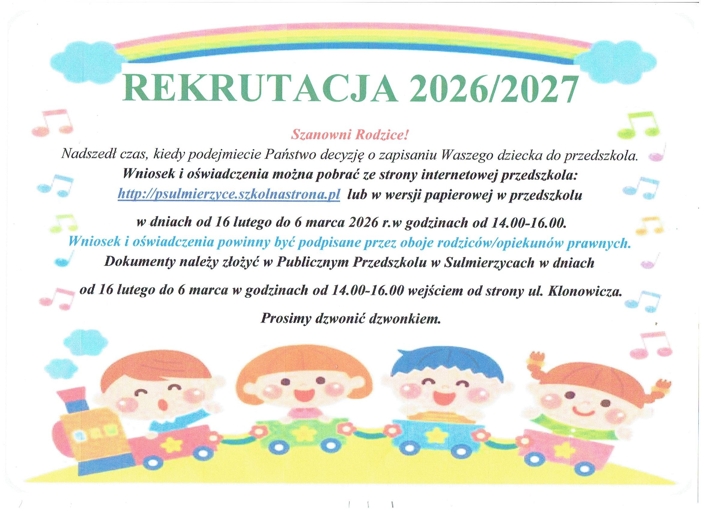 REKRUTACJA DO PUBLICZNEGO PRZEDSZKOLA W SULMIERZYCACH