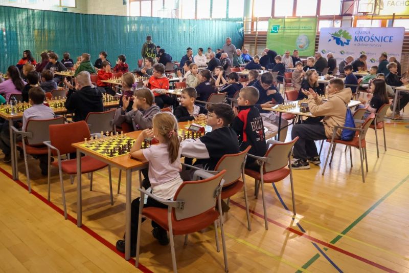 W sobotę 22 listopada 2025 roku w Hali Sportowej w Krośnicach odbył się XVIII Otwarty Turniej Szachowy „ O Puchar Doliny Baryczy”. W zawodach wystartowało ponad 90 osób. Rozgrywki prowadzono systemem szwajcarskim na dystansie siedmiu rund z tempem gry -10 minut oraz dodatkowo 5 sekund na wykonanie każdego posunięcia. Nasi uczniowie wystartowali w dwóch grupach wiekowych: